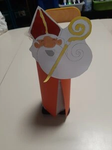 Armés de papier, de colle, d'une bouteille d'eau en plastique (vive le recyclage) et d’un bon enthousiasme, les enfants ont fabriqué leur propre Saint-Nicolas, composé d’un rouleau décoré, d’une grande barbe blanche et de la célèbre mitre rouge. Chaque détail a été soigneusement assemblé : le manteau, le sourire, et bien sûr, la crosse dorée qui complète parfaitement leur création.