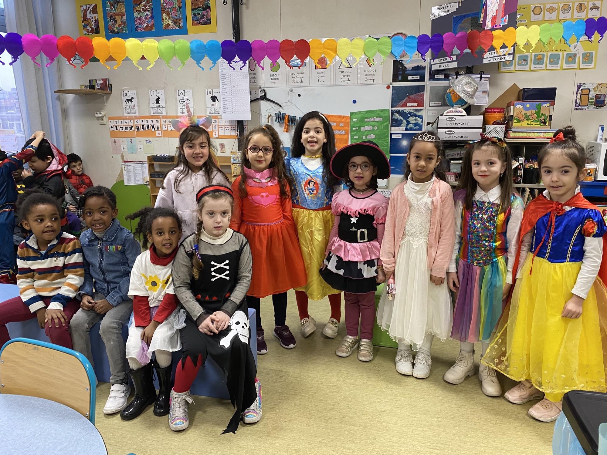 D'un côté, un cortège de princesses, de fées et de personnages enchanteurs a illuminé la classe. On pouvait admirer d'adorables Blanche-Neige, des princesses aux robes scintillantes, une charmante petite sorcière au chapeau pointu, et d'autres demoiselles rivalisant de créativité dans leurs costumes. Les sourires étaient radieux, et chacune portait fièrement sa tenue, prête à vivre une journée magique.